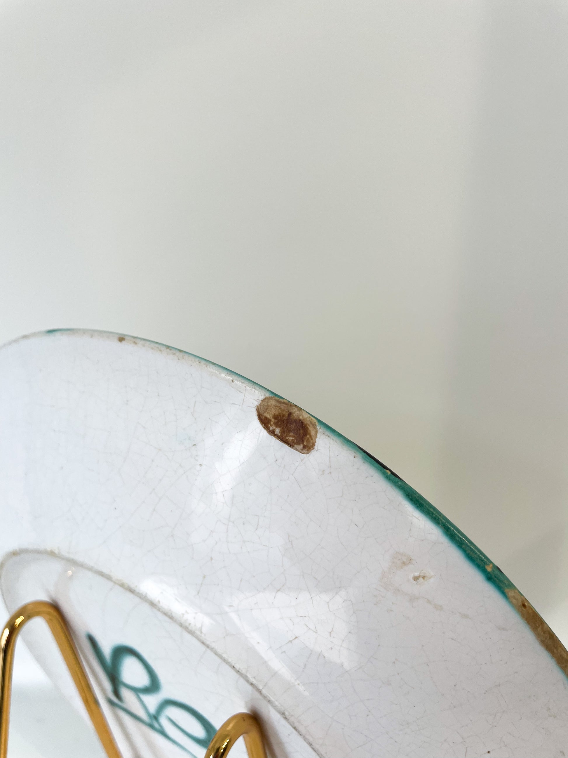 Pris doux, petit manque (voir photos) au dessous de l'assiette mais n'est pas visible sur le dessus. N'affecte pas son utilisation. Ne pas mettre au lave vaisselle.