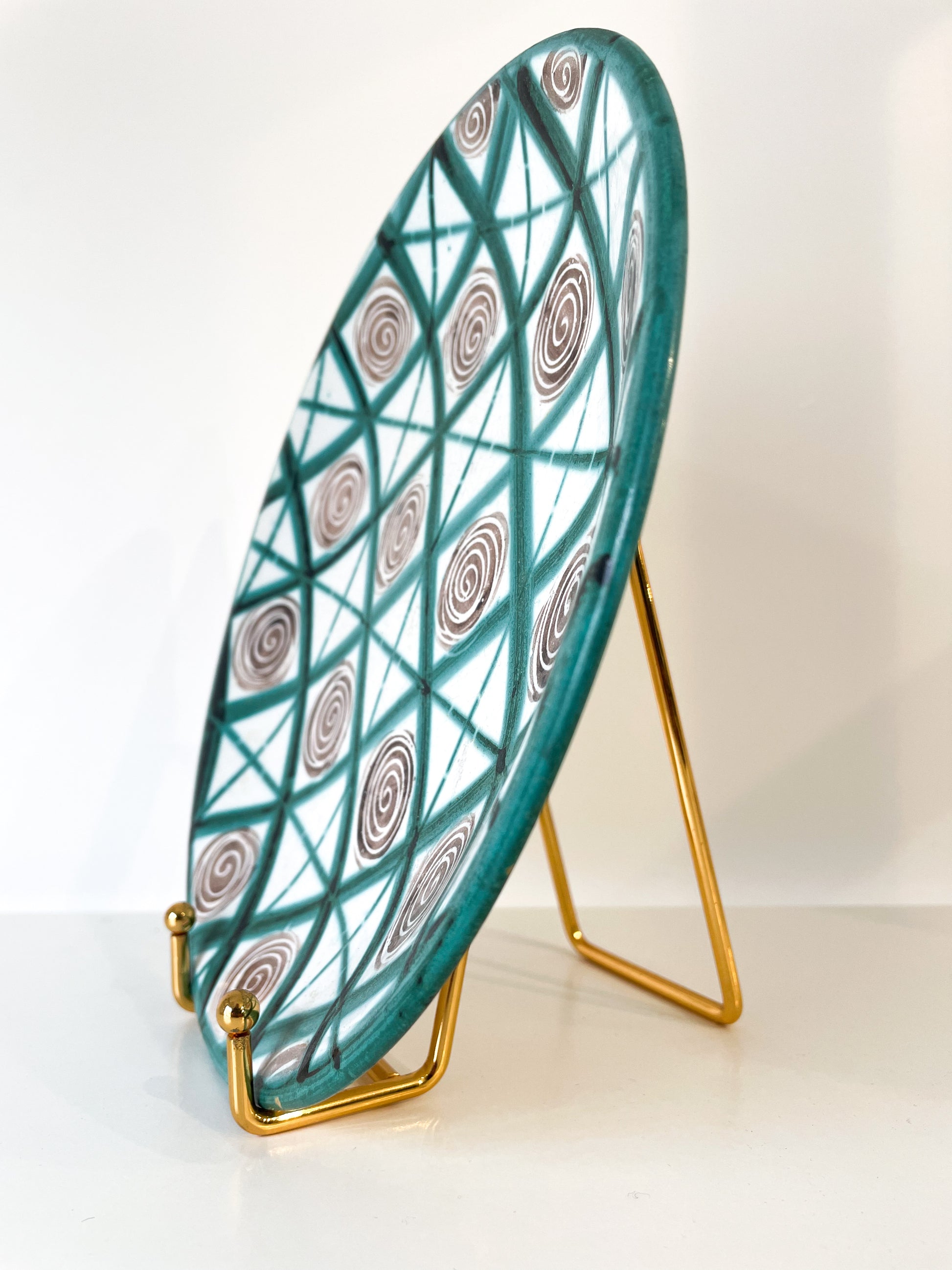 Belle assiette, à forme gémoétrique, dans un joli vert éclatant. Elle est signé RP au dessous, Robert Picault, et a été confectionnée à Vallauris dans les années 60. Elle sera parfaite pour une présentation de grignotages à l'apéritif, et sublimera votre table avec élégance et authenticité.
