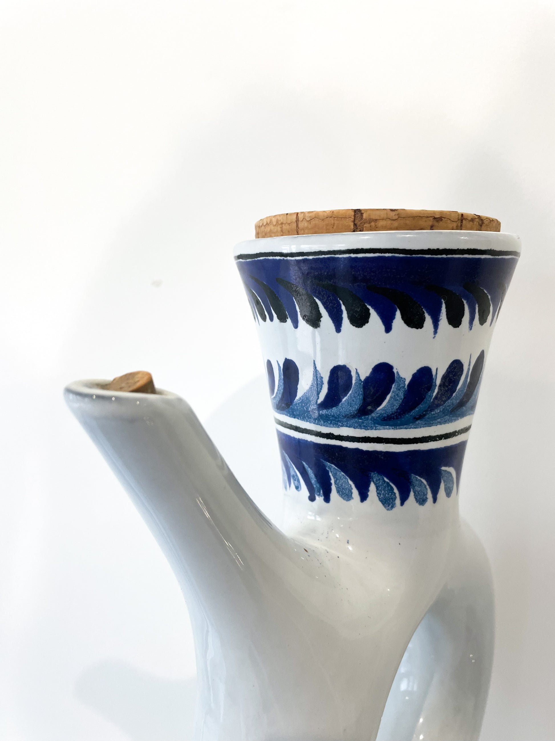Vase bouteille par Roger Capron à Vallauris. Vous connaissez notre amour pour ce grand artiste de la céramique française. C'est une bouteille que nous affectionnons particulièrement pour la profondeur de son bleu, et son style artisanal.