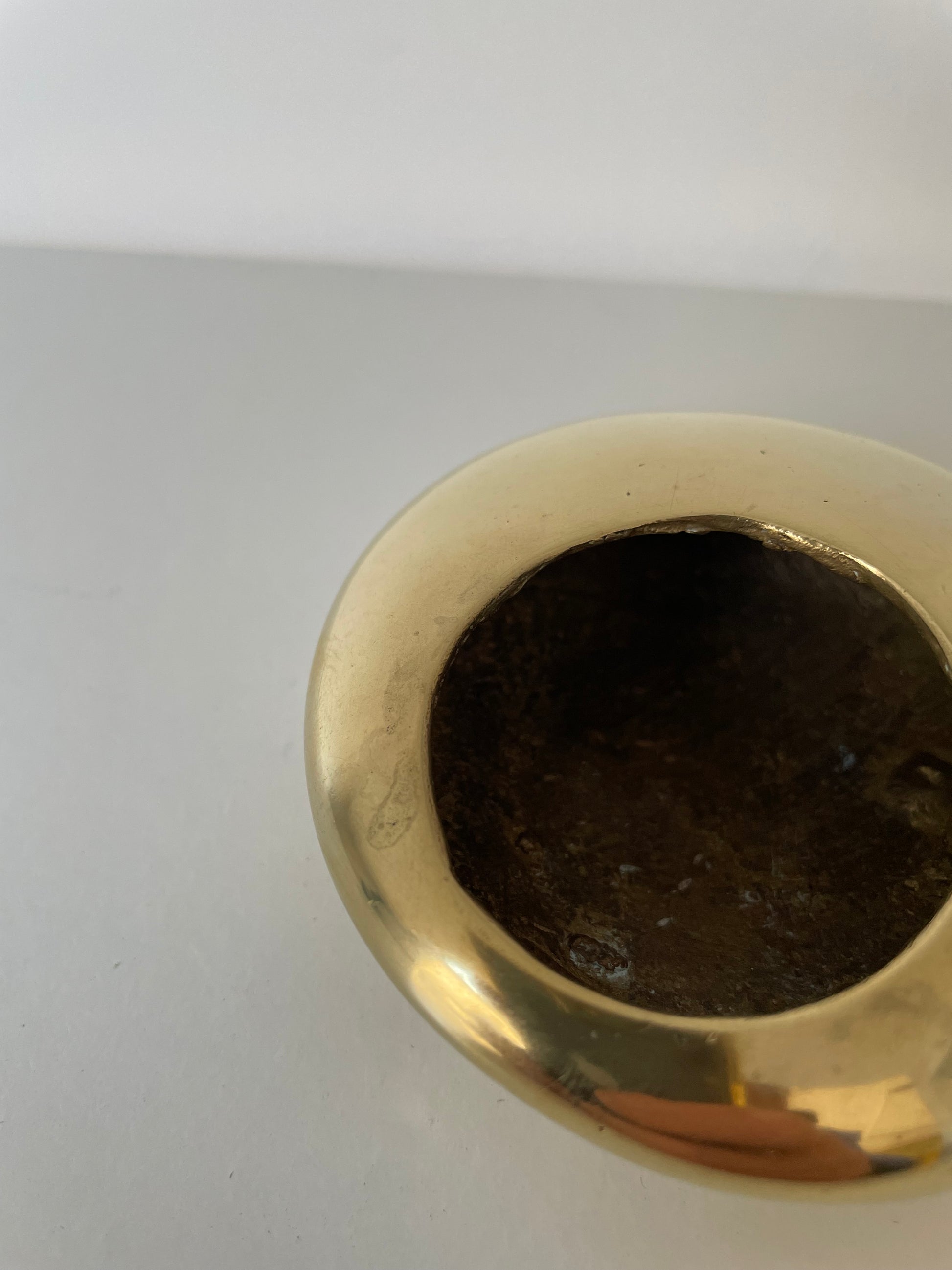 Sa forme épurée et organique, à la fois sculpturale et fonctionnelle, en fait un bel objet décoratif autant qu’un accessoire de collection. Le laiton bien brillant, présente une jolie patine naturelle, témoignant de son âge et de son authenticité.