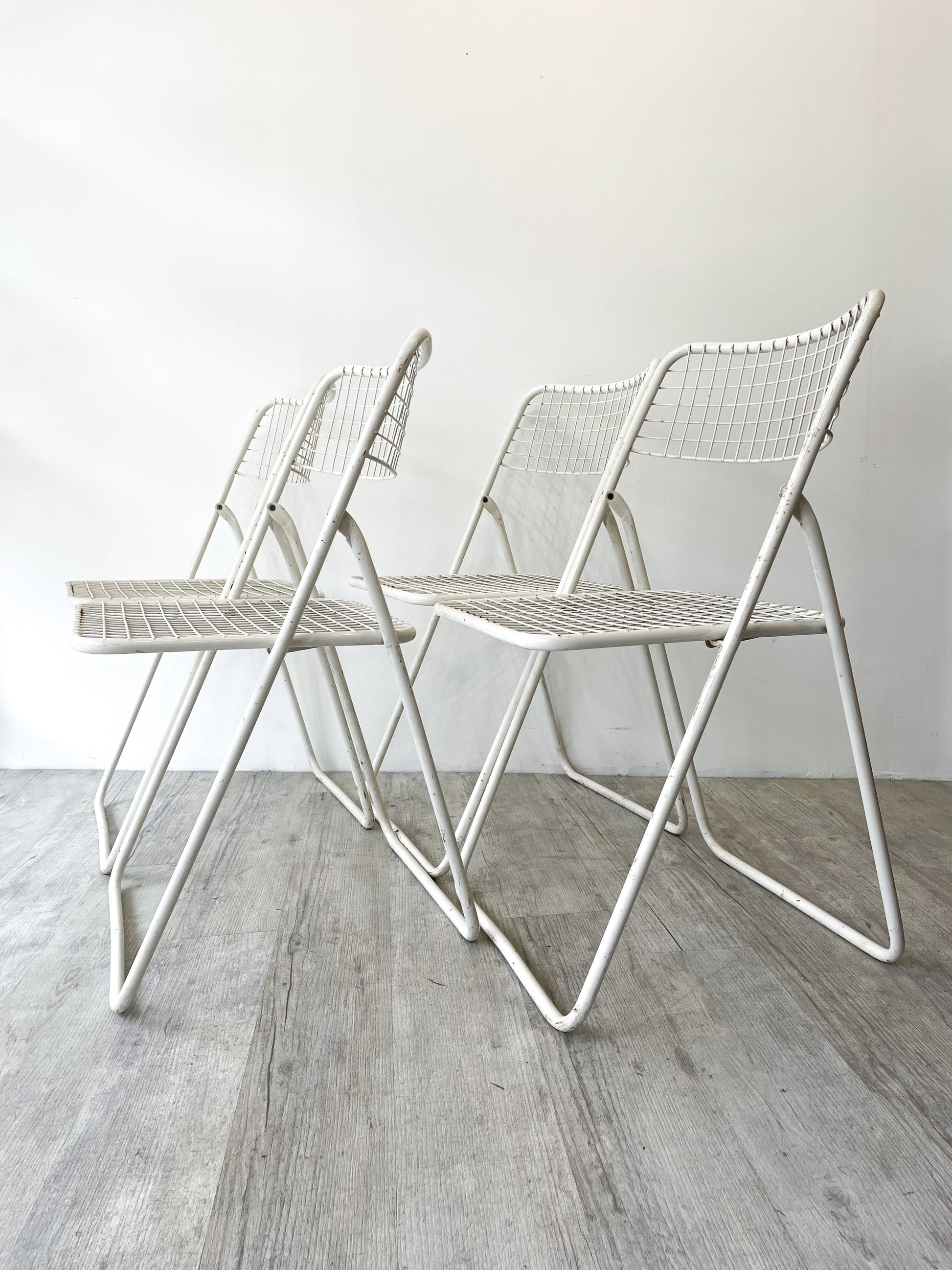 A noter la présence de traces de rouilles qui n'altèrent en rien leur utilisation. Le prix tient compte de l'état des chaises.