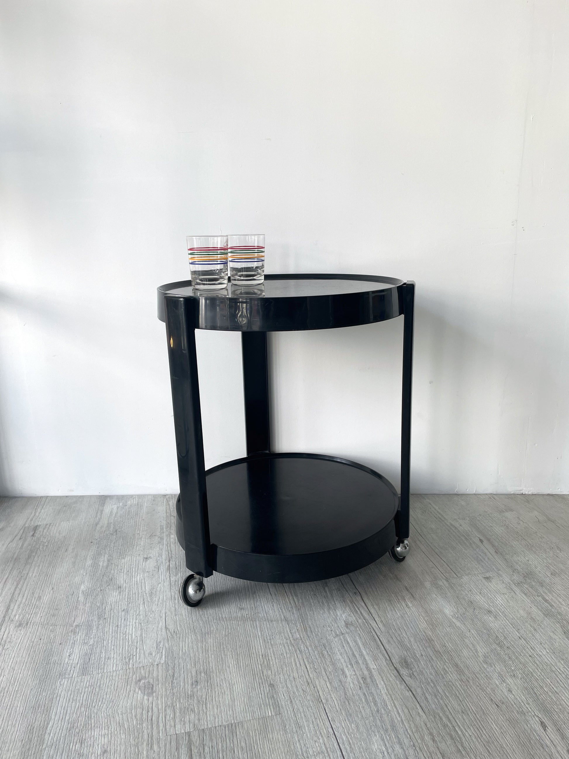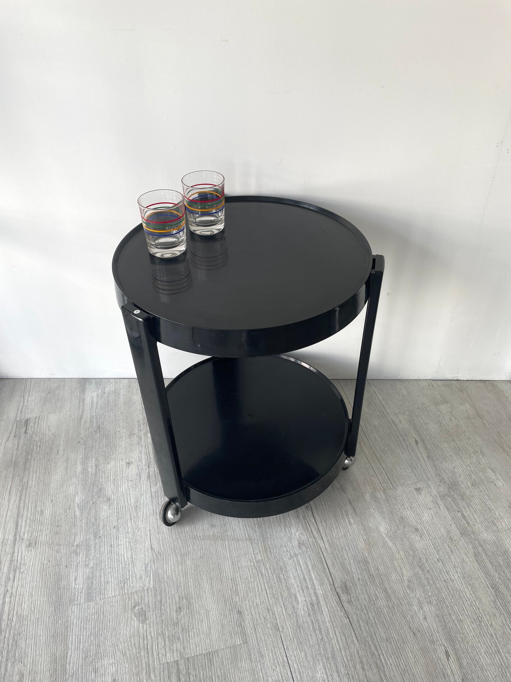 Desserte ou Chariot de Bar tout droit venu de la grande époque du design italien mid-century des années 70's. Bon état de fonctionnement, comporte quelques rayures d'usage sur le plateau.