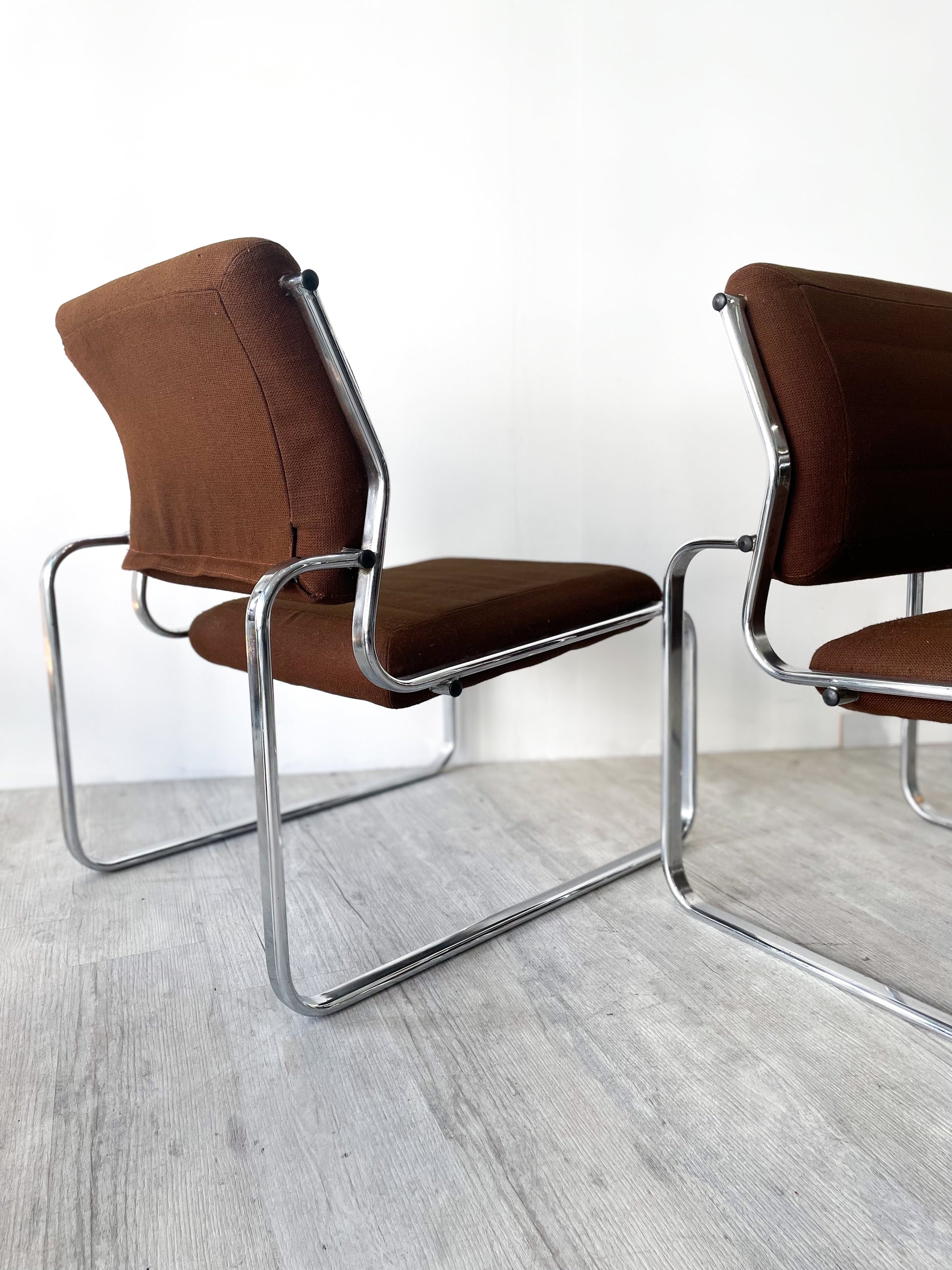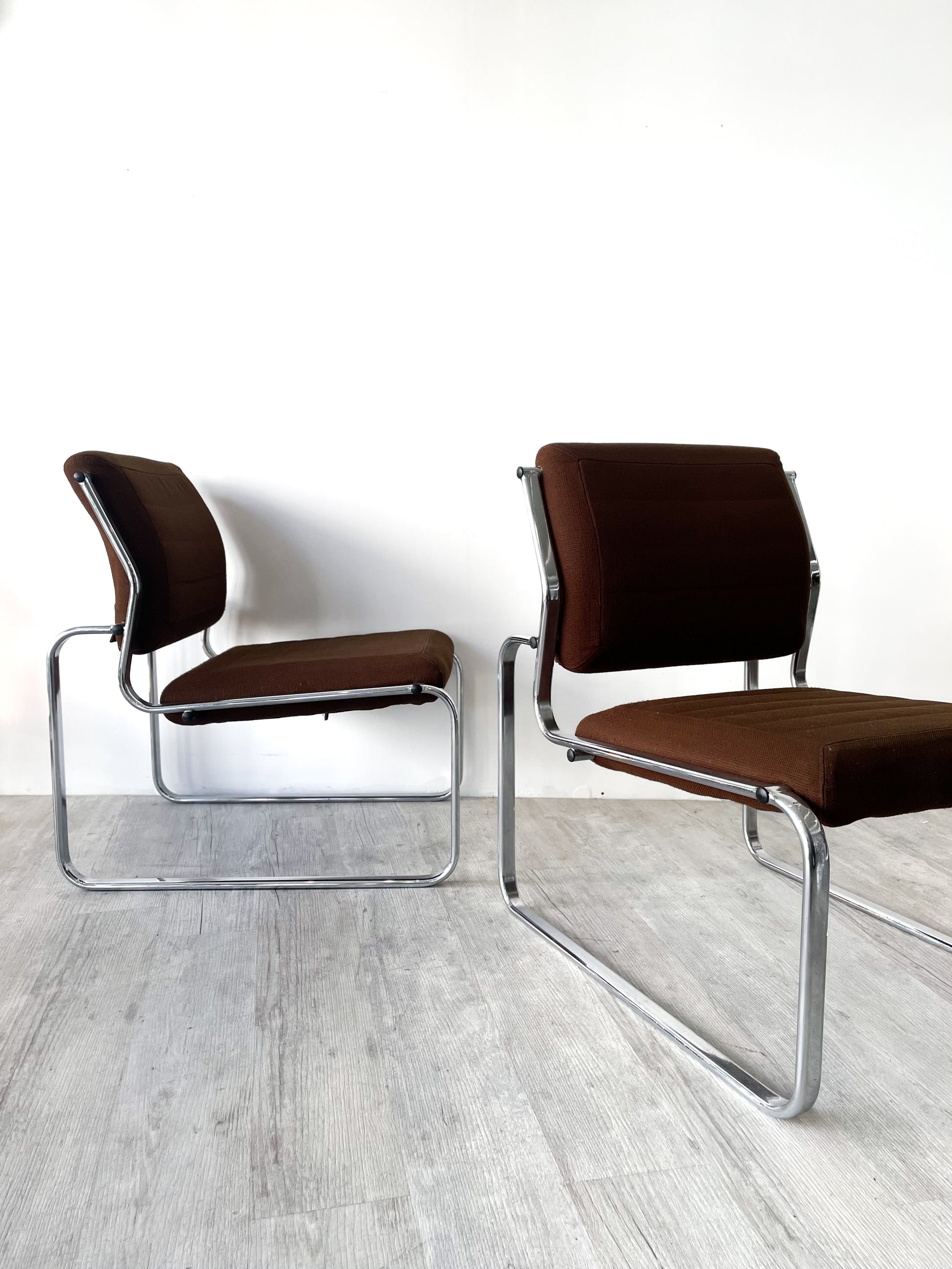 Le tissu est d'une grande qualité, joliment conçu, dans une couleur chocolat très esthétique. Le piètement en métal chromé est à la fois fin et robuste. Les dimensions sont idéales, et l'assise particulièrement confortable. Une vraie réussite !