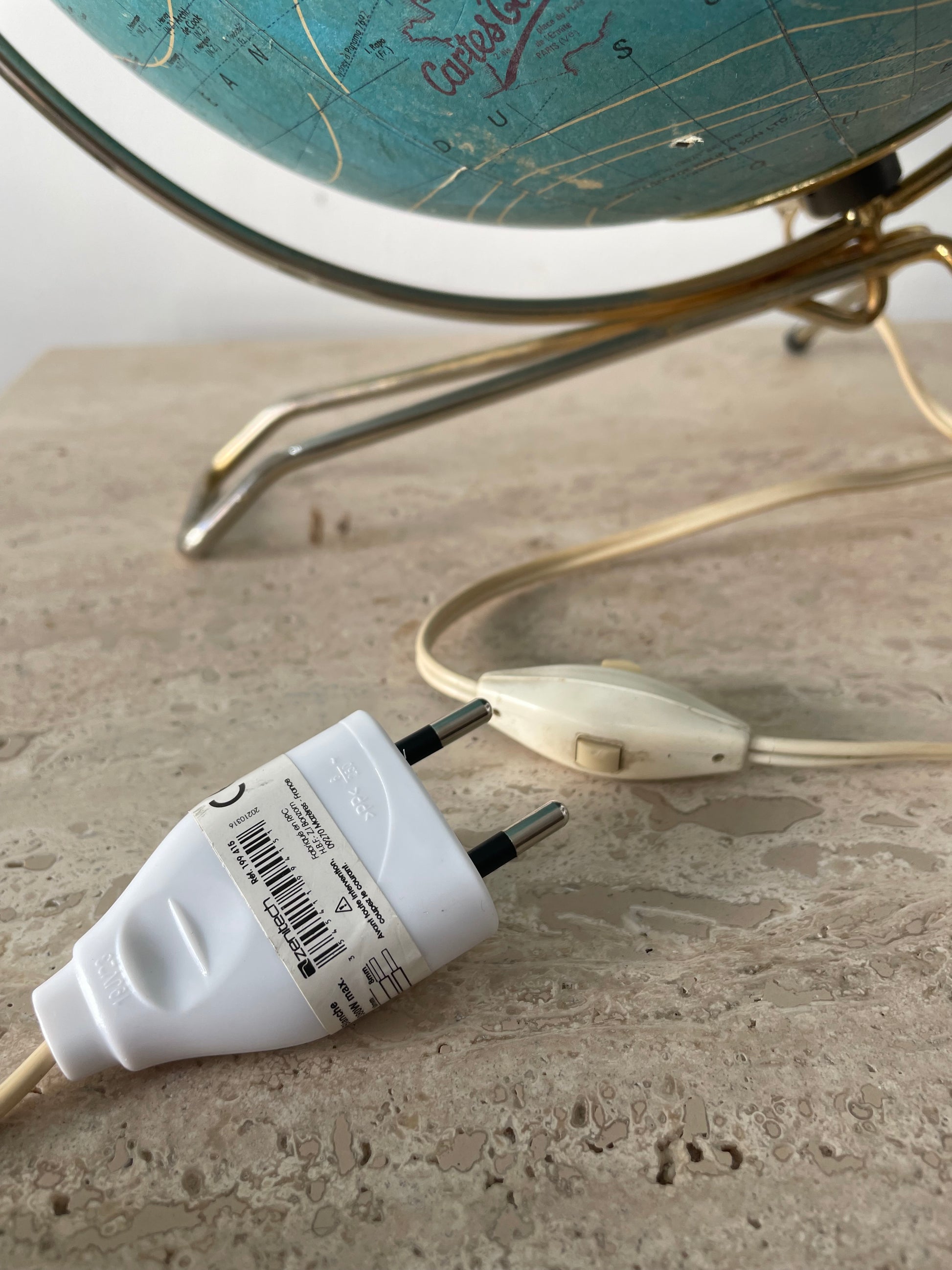 Le piétement en métal est en bon état, néanmoins la carte est bien abimée, ce qui à notre goût ne lui retire aucunement son charme.