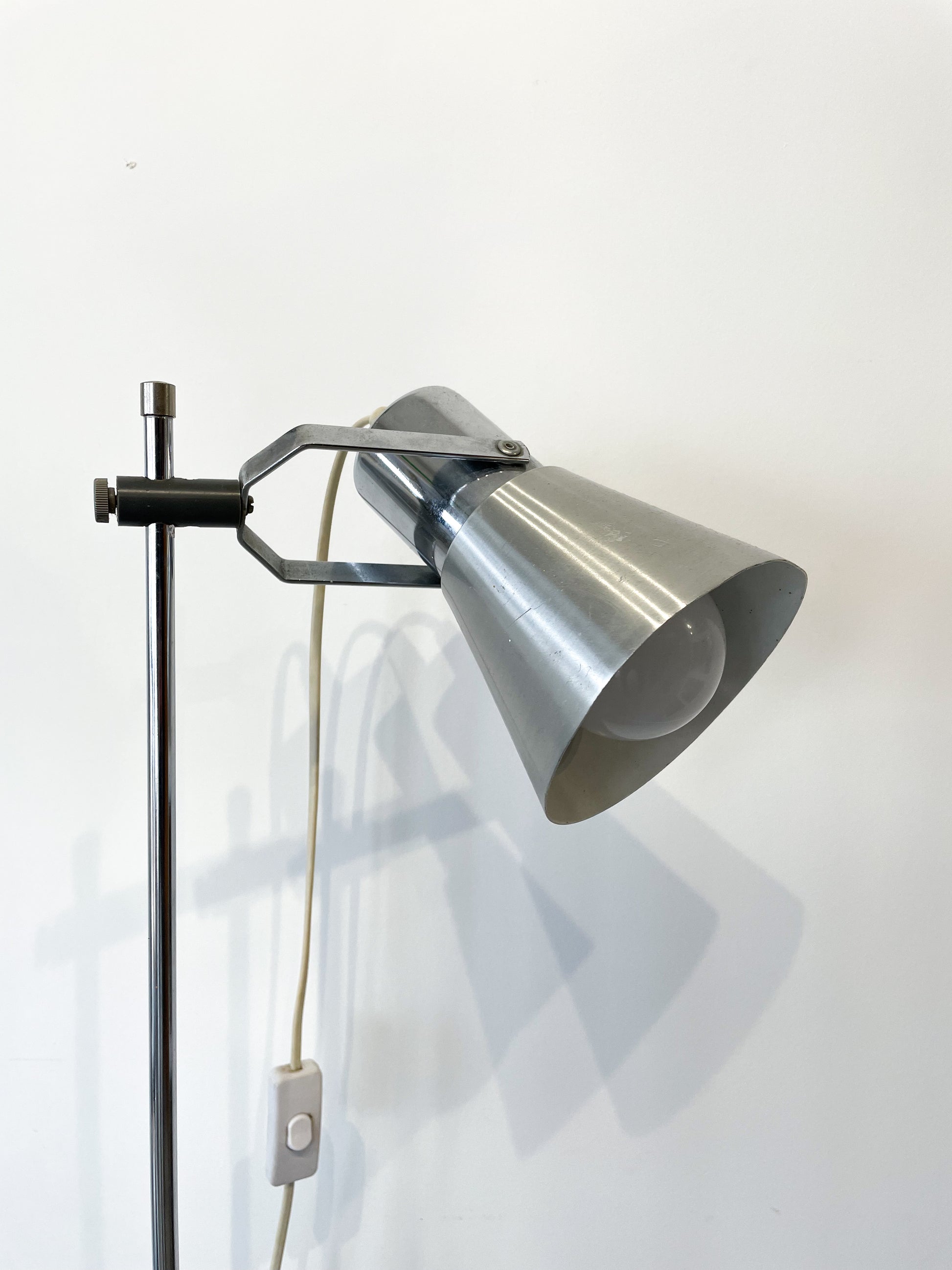 Joli lampadaire en métal chromé et brossé des années 70 en très bel état. Idéal pour un point lumineux dans une pièce ou à utiliser en liseuse au coin du canapé.