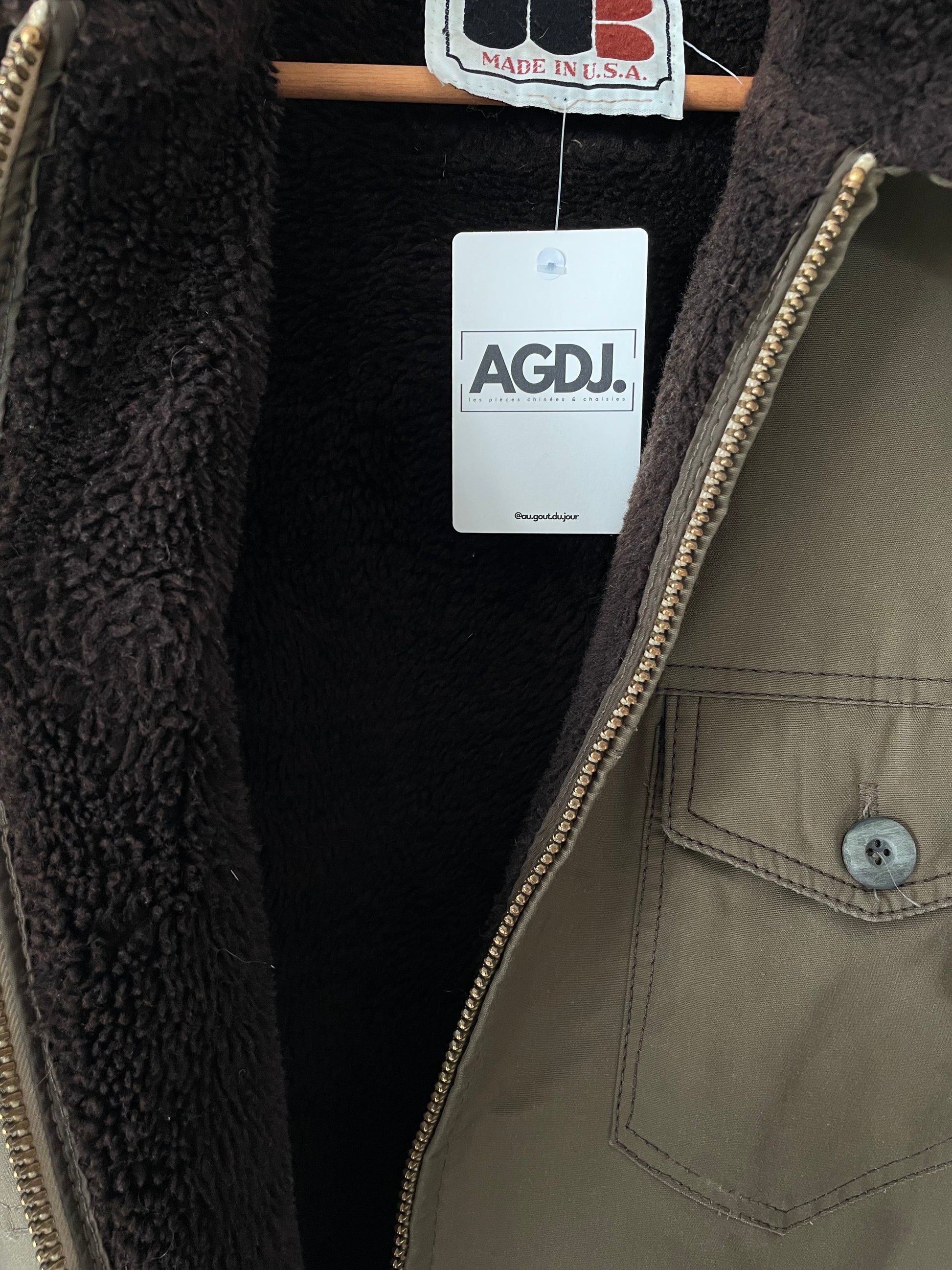 Optez pour l’authenticité avec ce blouson William Barry vintage, fabriqué aux USA. Avec sa coupe intemporelle et ses finitions de qualité, il incarne le style rétro américain. Confortable, résistant et chaud avec sa doublure, c’est une pièce unique qui apporte du caractère à votre look. Il est 100% coton et la doublure est en laine. Idéal pour un style casual et authentique.
