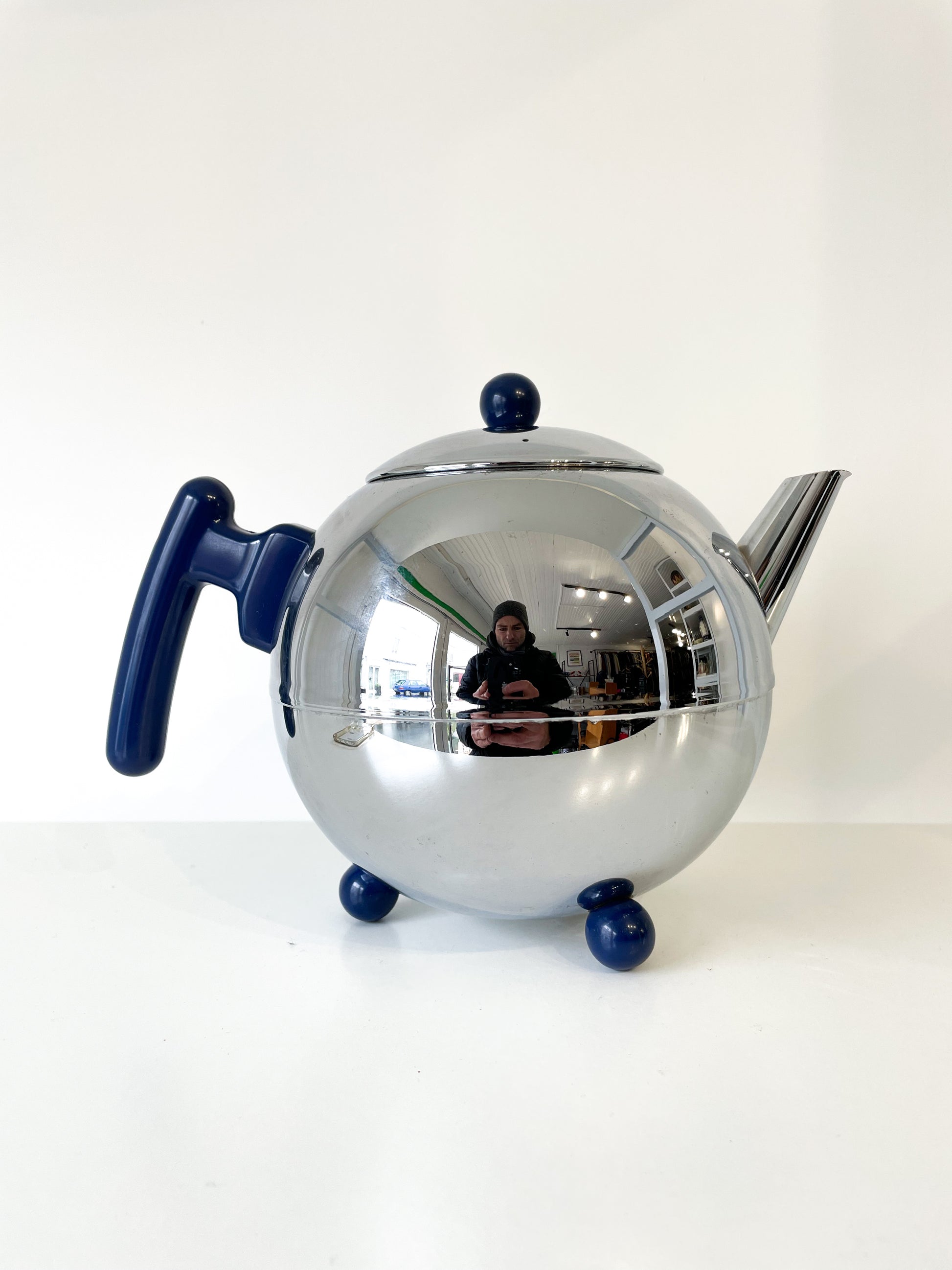 Coup de coeur sur cette théière "Duet Bella Ronde" des années 90, éditée par Bredemeijer Hilversum au Pays-Bas. Elle est le résultat d'une commande de la célèbre marque marque de café néerlandais Douwe Egberts.